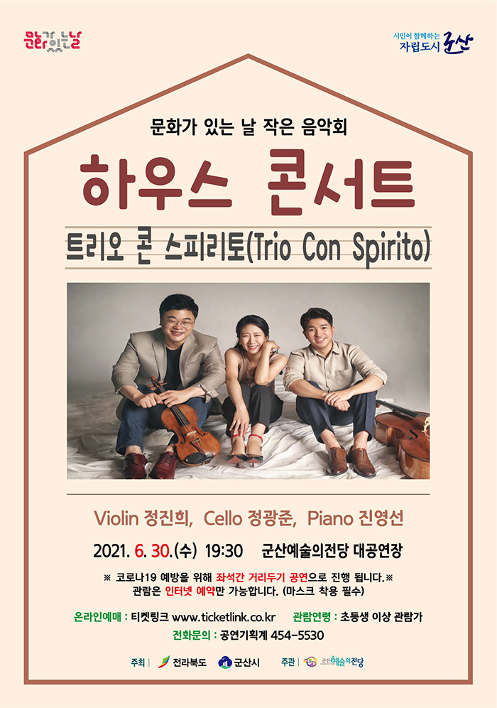 [단독판매] 6월 하우스 콘서트 〈트리오 콘 스피리토〉-군산 티켓오픈 안내