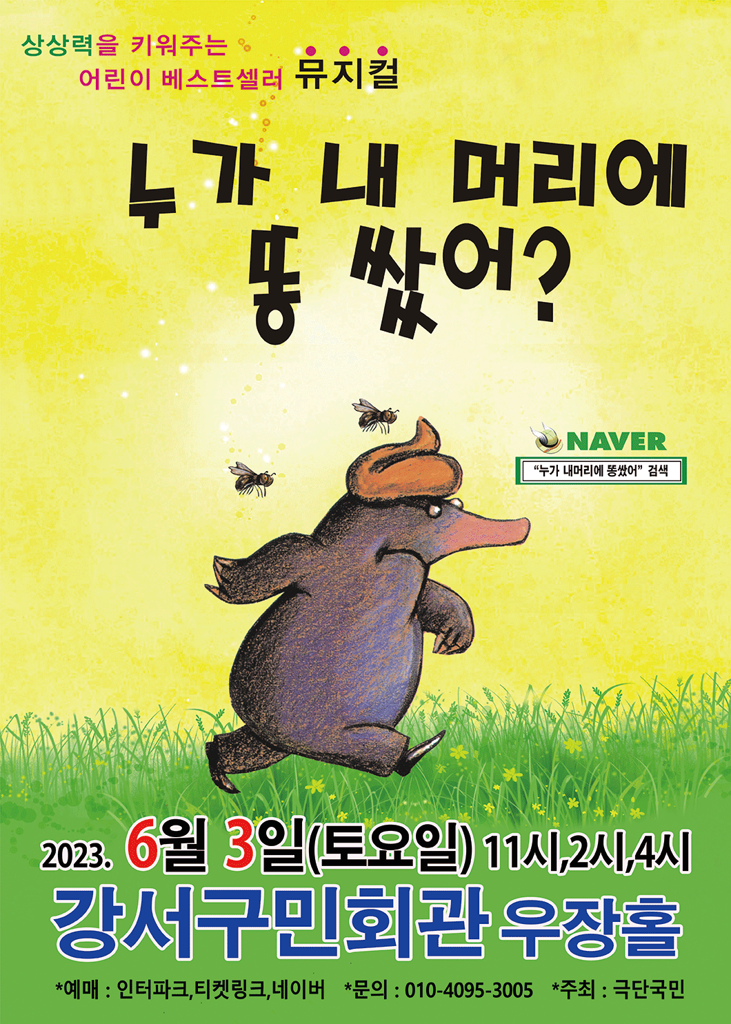 2023년 어린이 베스트셀러뮤지컬 <누가 내 머리에똥 쌌어?> - 서울 티켓오픈 안내입니다.