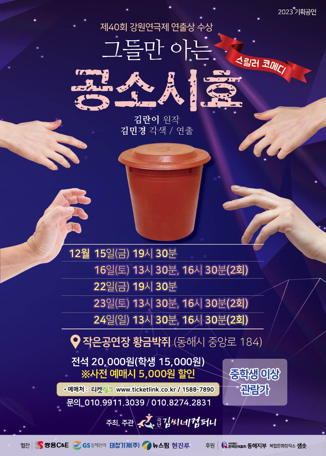 후원 : 사단법인 한국연극협회 동해지부, 복합문화창작소 샘솟